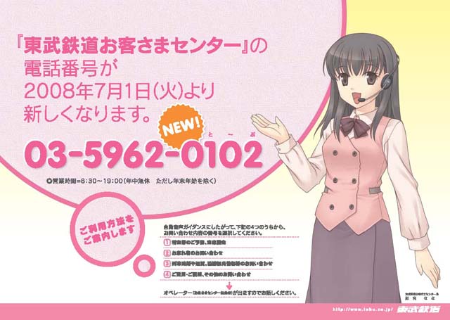 お客さまセンターの電話番号を、7月1日から「03-5962-0102」に一本化したのに合わせて“採用”された。