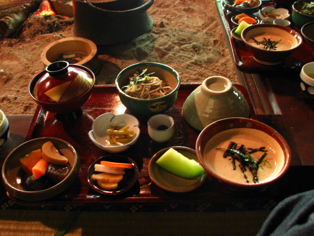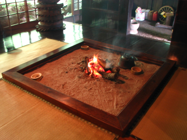 囲炉裏(本物)を囲んでみんなで車座になって座りました。
