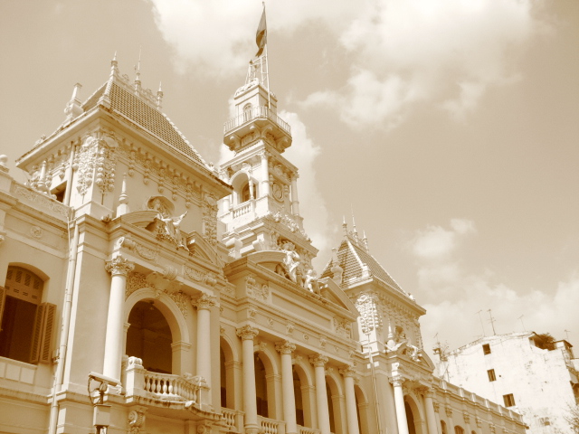 上の段がベンタイン市場周辺で、下の段右側が人民委員会の建物にセピアフィルターをかけたもの。