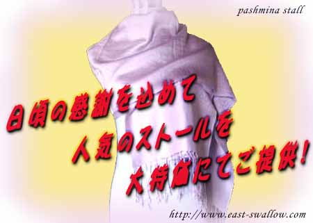 寒さも手伝ってか、当店『イーストスワロー』の「パシュミナストールセール」も中々好調な売れ行きです。