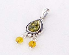 アンバーの中でもちょっとめずらしいグリーンアンバーを基調に、デザインのよいシルバーフレームでまとめたペンダントトップです。