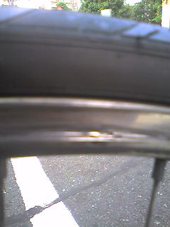 チューブの穴もわかりやすく順調にパンク修理をしていたのですが、ホイールを触ると指先にとげとげしい違和感が・・・。