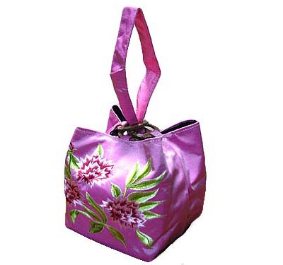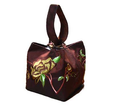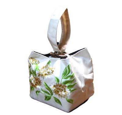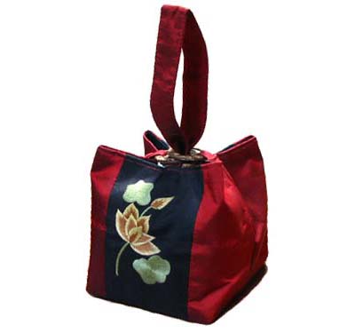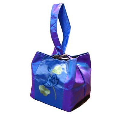 光沢の美しいタフタシルクにロータスの刺繍が両面に入ったお洒落なポーチは、セレブなパーティにも似合いますが、浴衣等の和装や普段着にもよく映えます♪