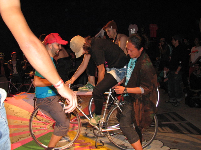 次はトラックスタンド(自転車でその場で脚をつかづにバランスをとる)やゴールドスプリント(ローラー台での仮想レース)などがありました。