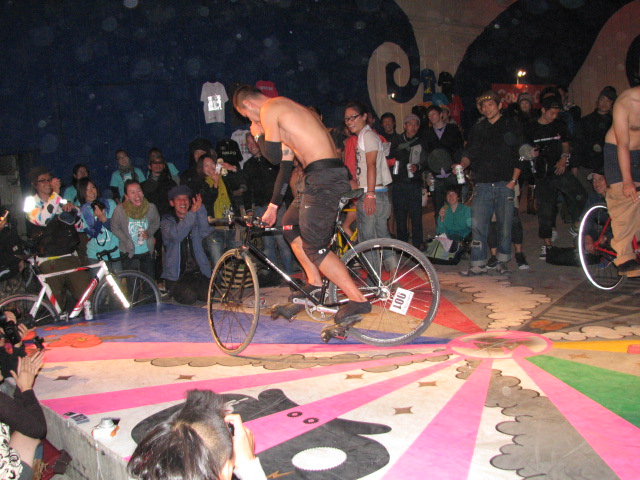 基本的には前日に行われたトラックスタンドと一緒なのですが、そのトラックスタンドをやりながら服を脱いでいくというもの!